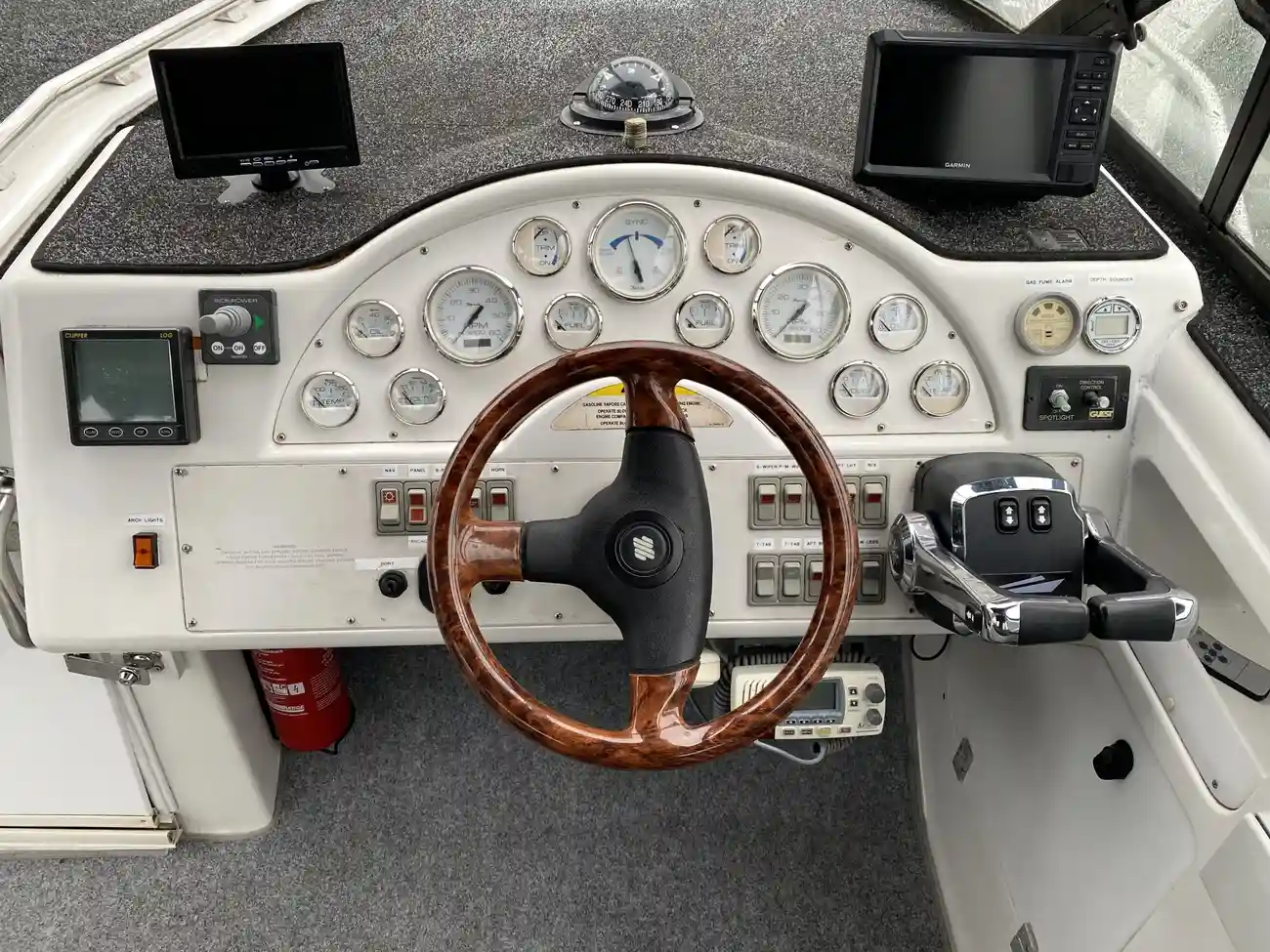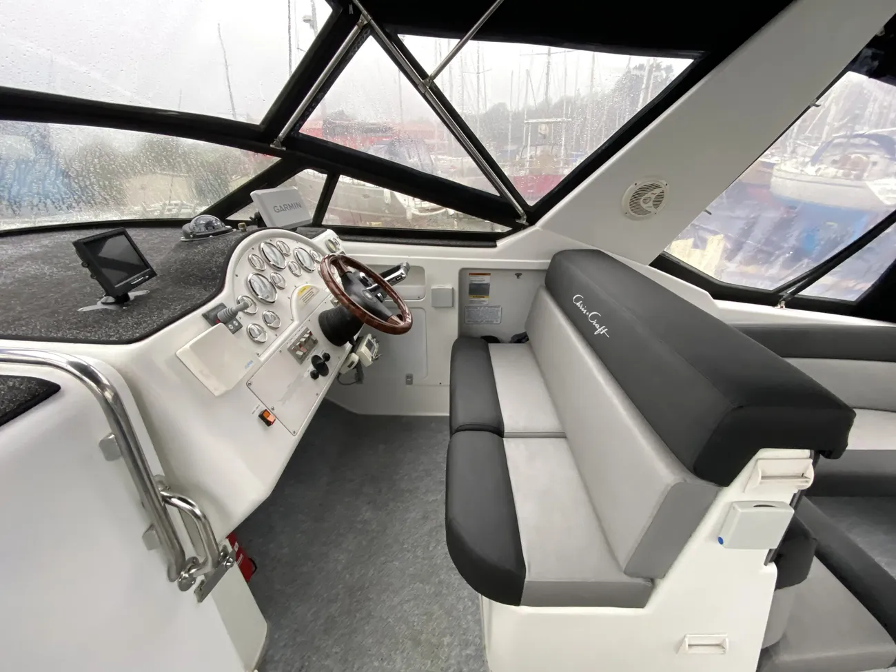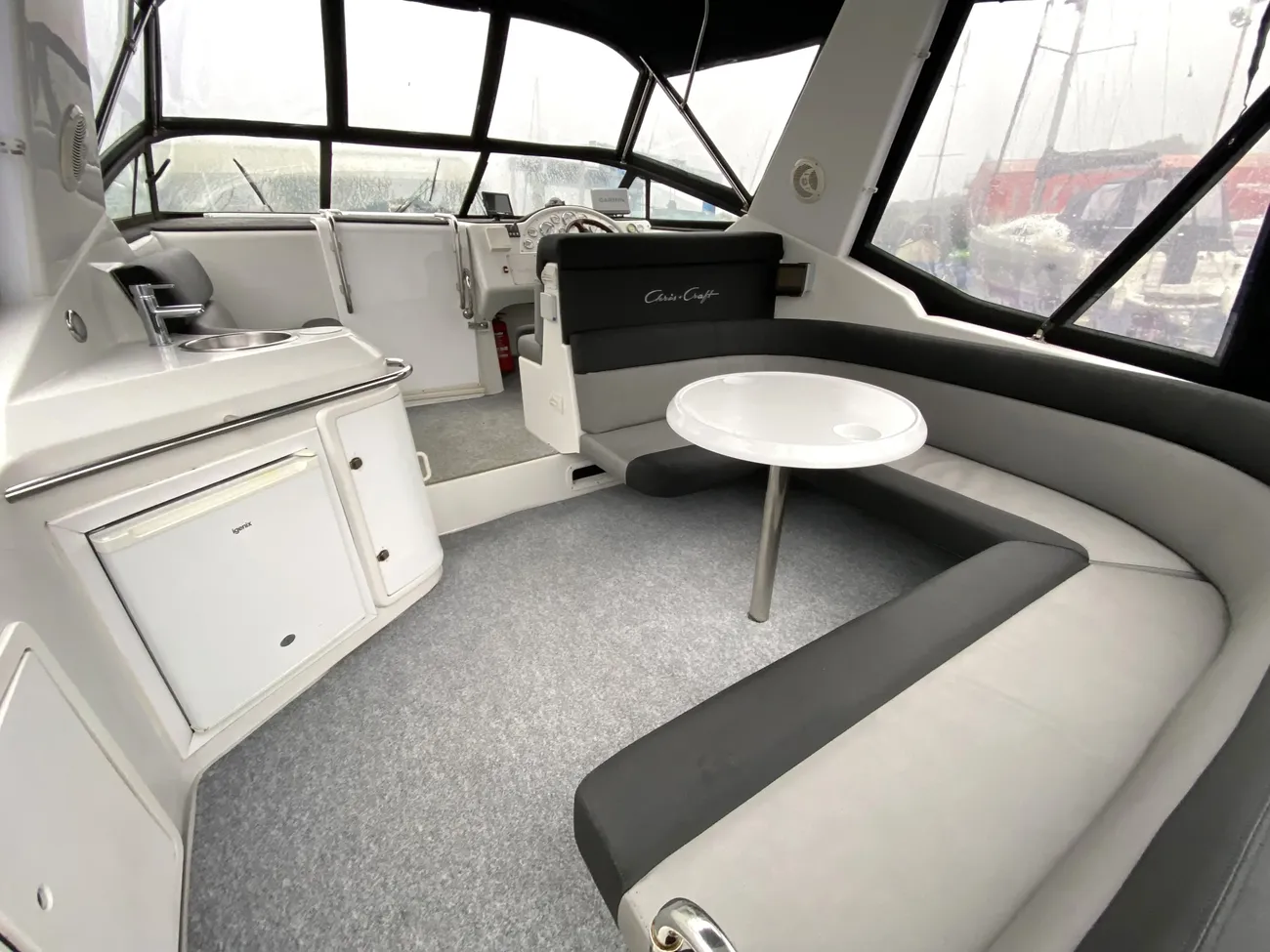 Style, comfort and performance. The Chris Craft 322 offers sleek lines, straight sheer and swept back radar arch which make this a standout boat out amongst the express cruiser market. Impressive performance from the twin Cobra Ford V8 twin engines with only 660 hours on the clock. Large spacious, sociable cockpit and great volume down below. Just the Job had been fully refurbished with new upholstery, carpets and curtains through out. Engines overhauled. New electronic navigation, bow thruster, marine toilet, plus more. This is a stylish, well finished, easily handled family cruiser.